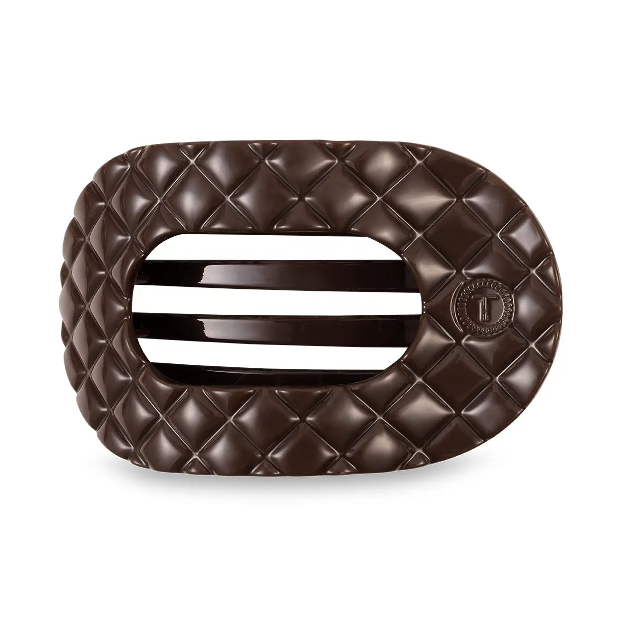 Lay flat and relax with the new TELETIES Truly Taupe Quilted Small Flat Round Hair Clip in Taupe. This hair clip is designed to allow you to lay back flat, do yoga, or sit comfortably in a seat with a headrest, and it is made with the same material that is nearly unbreakable. Lay down flat with comfort Bendable teeth for a secure yet gentle hold Lightweight, durable, and suitable for all hair types Perfect for all-day wear—from sunup to sundown